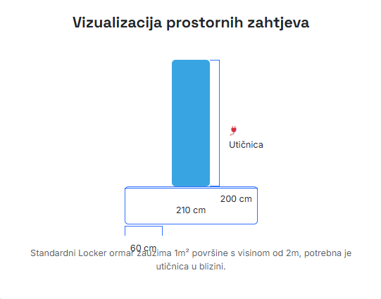 Minimalni tehnički zahtjevi za postavljanje Locker pametnog ormara